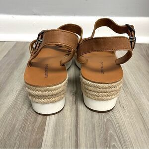New Women’s Lucky Brand Juniffer Brown Leather Platform Wedge Sandals in Size 8