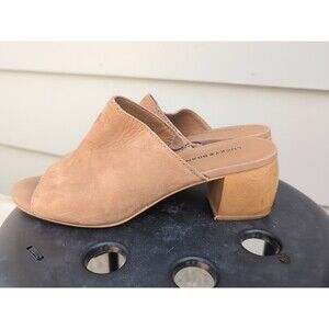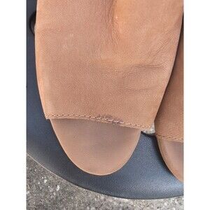 Lucky Brand Sandals Womens 8.5 MBrown Tan Leather Chunky Heel Wide Strap Slip On