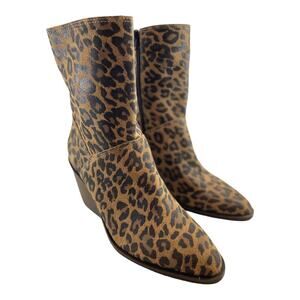 Lucky Brand Sarey Leopard Print Suede Heeled Mid Boot Size 6 1/2 M