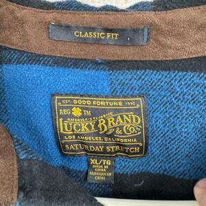 Item: Lucky Brand Saturday Stretch Plaid Flannel Shirt Mens XL Blue Classic Fit