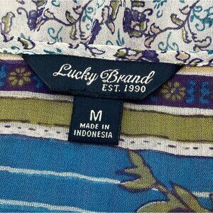 Lucky Brand Savannah Boho Chic Floral Tunic Top Button Details Elastic Waist Med