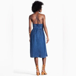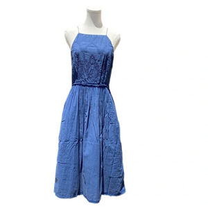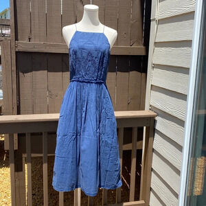 Lucky Brand Schiffly Bib Dress in Indigo Blue size Large