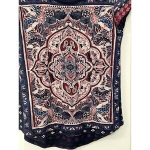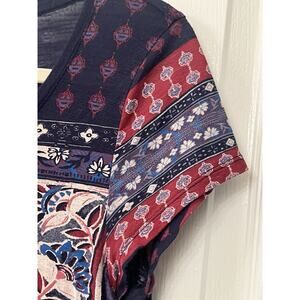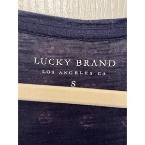 Lucky Brand Scoop Neck Cap Sleeve T-Shirt Size Small Navy Blue Boho Mandala