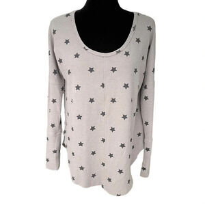 Lucky Brand Scoop Neck Ribbed Henley Gray Thermal Star Print Medium