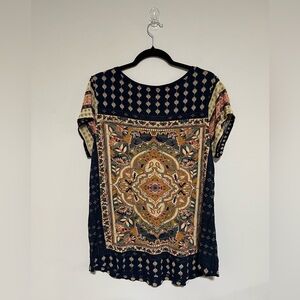 Lucky Brand Scoop Neck Short Sleeve Boho Top Size 1X Viscose Lightweight