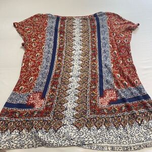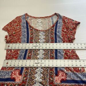 Lucky Brand Scoop Neck Short Sleeve Pull Over Top Multicolored Floral Plus Sz 1X