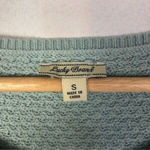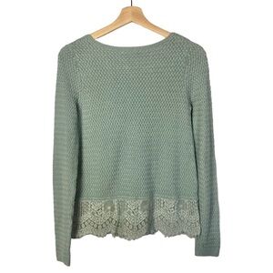 Lucky Brand Seafoam Green Blue Knit Lace Trim Long Sleeve Sweater S