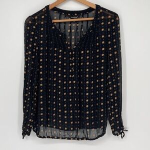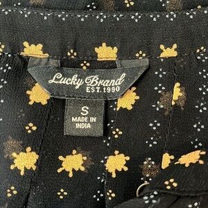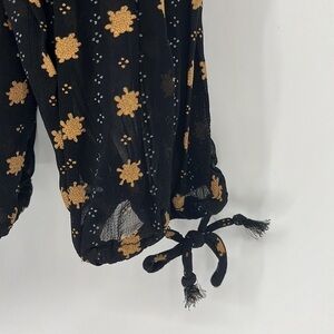 Lucky Brand Semi-Sheer Boho Peasant Top Black Gold Size Small
