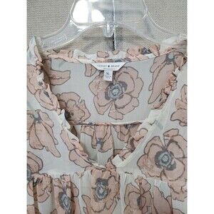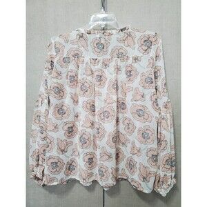 This is a Lucky Brand Semi-Sheer Floral Ruffle Collar Balloon Sleeve Blouse Size XL