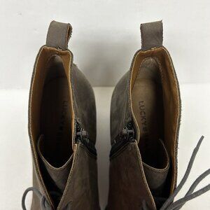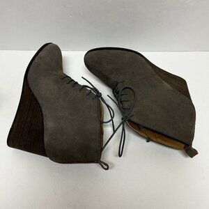 Lucky Brand Semihr Gray Leather Suede Lace Up Wedge Heel Booties Boots Sz 10 42