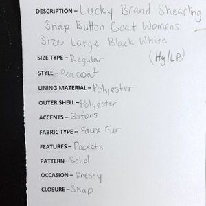 Lucky Brand Shearling Snap Button Coat Women's Size Large Black White