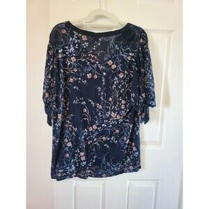 Lucky Brand Sheer Blouse Navy with Floral Pattern Size 1X