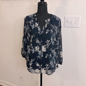 Lucky Brand Sheer Floral Blouse, sz Small.
