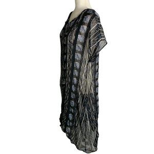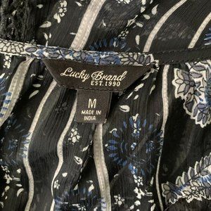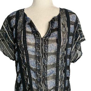 Lucky Brand Sheer High Low Dress M Black Floral Short Sleeve V Neck Crochet Lace