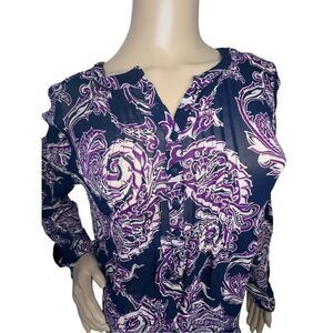 Lucky Brand Sheer Lightweight Long Sleeve Paisley Patterned Blouse