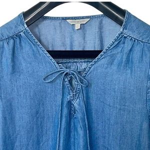 Lucky Brand Shift Dress Boho Blue Denim Lace Up V-Neck Short Sleeves Size S