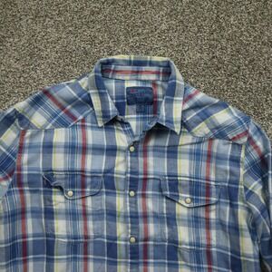 Lucky Brand Shirt Men's Medium Plaid Western Long Sleeve Button Up Casual