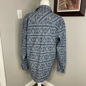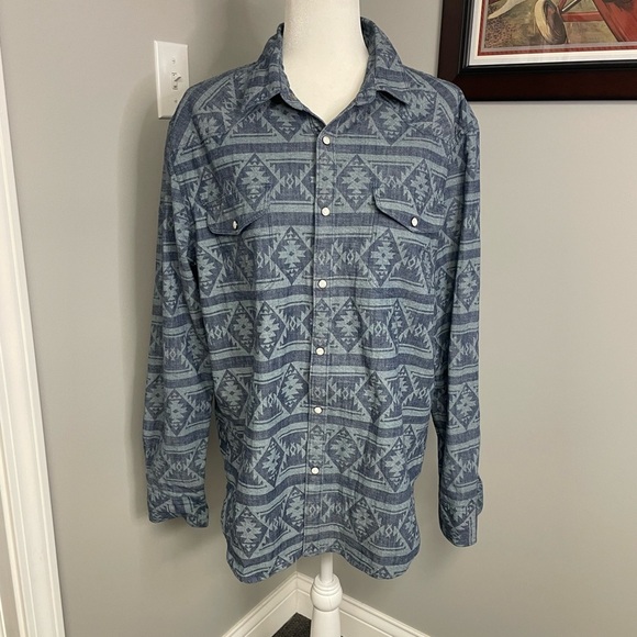 Lucky Brand Shirt Mens PEARL SNAP Large Saturday Stretch Button Denim Aztec L