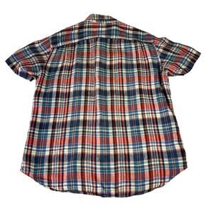 Lucky Brand Shirt Men's Size Large Red Blue Linen Plaid Short Sleeve Button Down