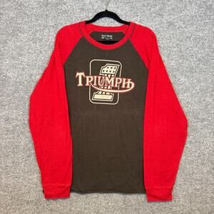 Lucky Brand Shirt Mens XL Gray Red Triumph Long Sleeve Crewneck Tshirt Raglan