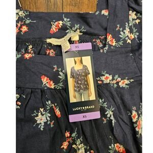 Elevate your wardrobe with this charming Lucky Brand floral top! This adorable shirt is new with tags and ready to make a statement. The lovely floral design on a blue background is perfect for adding a pop of color to any outfit.