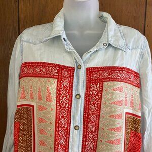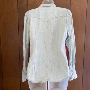 Lucky Brand Shirt Women's M Blue Red Patchwork Pearl Snap Western Rodeo Cowboy