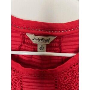 Lucky Brand Shirt Womens Small Red Stripe Lace Crochet Boho Tunic Top 3/4 Sleeve