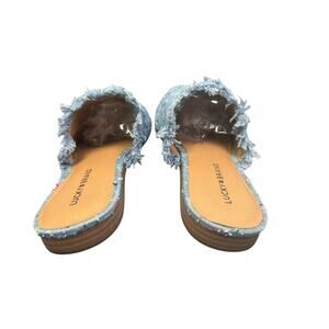 Lucky Brand Shoes Bapsee Chambray Fringe Mules slip-on Light Blue Summer Casual