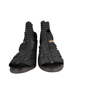 Used Lucky Brand Shoes Womens 7 Sandal Bootie Block Heel Open Toe Leather Zip Black