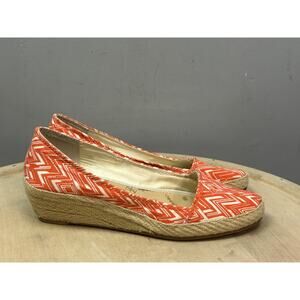 Lucky Brand Shoes Womens Size 7 Orange White Espadrille Wedge Slip On Geometric
