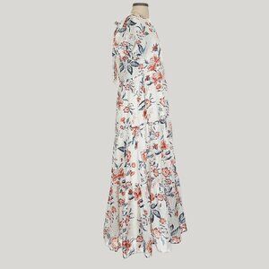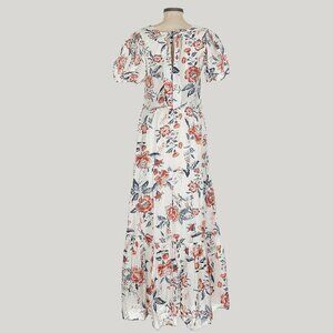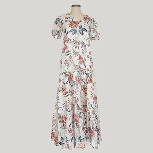 Lucky Brand Short Puff Sleeve V-neck Tiered Tie Back Floral Maxi Dress sz XS