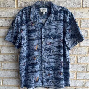 Lucky Brand Short Sleeve Button Up Linen Blend Tropical Shirt Men's Size M
