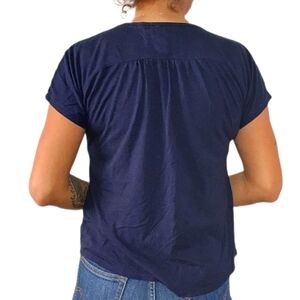 Lucky Brand Short Sleeve Henley V Neck Size Large Cotton Rayon Dark Blue