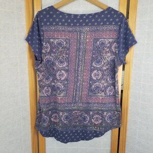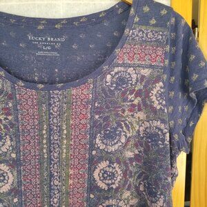 Lucky Brand Short Sleeve T-Shirt Scoop Neck Indigo Boho Print Size Large
