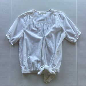 Chic white blouse with tie-front detail. Short sleeves and relaxed fit. Perfect for casual outings.
