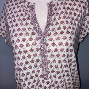 Lucky Brand, Short Sleeve 1/4 Button Down Boho Patterned Top Small Women