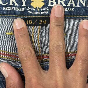 Lucky Brand Shorts Womens Size 18 (34) Blue Riley Legend Distressed USA Patch Peace Flag