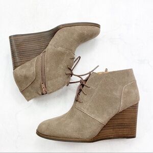 Lucky Brand Brown Classic Shylow Wedge Booties. Almond Toe. Lace Up. Inner Ankle Zipper Closure. Cushioned Footbed. Super Cute & Comfy. No Stains or Rips. New. Never Worn.