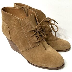 Lucky Brand Shylow Suede Lace Up Wedge Booties Size 8 (38.5) Beige Leather Boots