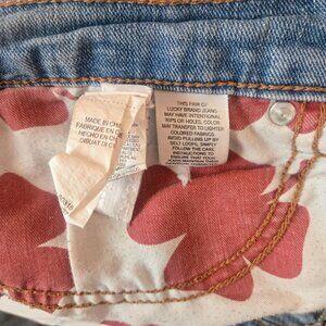 Lucky Brand Siena Cigarette distressed blue jeans with cute fabric patches in rips.