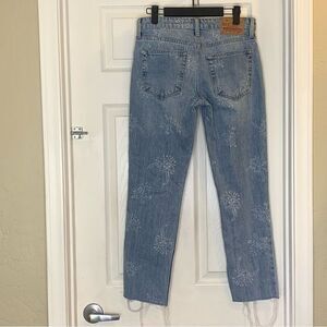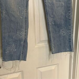 Size 0/25 Raw hem Waist 14.75” flat Rise 9.25” Leg opening 6.5” Inseam 27”