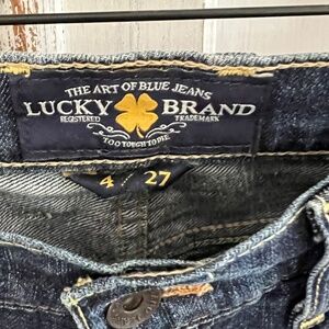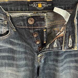 Very gently worn Lucky Brand Sienna Tomboy straight leg button fly jeans, size 27. Signature Lucky Brand "Lucky You" detailing on the button fly, shamrock lining in the pockets and a shamrock tag on the back right pocket, SO CUTE!!!! 32 inch inseam