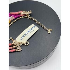 Lucky Brand Signed Semi Precious Multi strand Pink Yellow Bracelet New