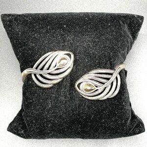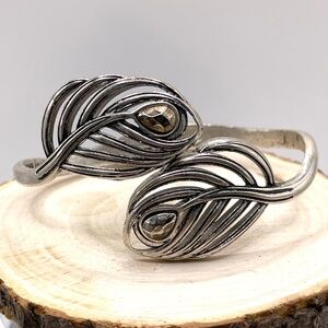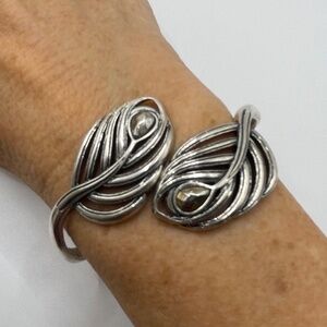 Lucky Brand Signed Silver Tone Bypass Hinged Leaf Bracelet