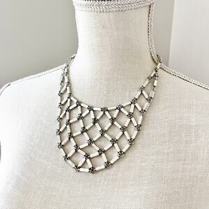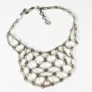 Lucky Brand Silver Mesh Bib Statement Necklace