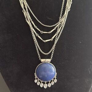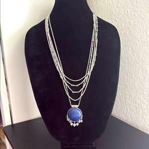Lucky Brand Silver-tone Multi Layer Blue Large Rock Stone Necklace Boho 26” EUC