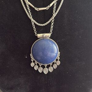 Lucky Brand Silver-tone Multi Layer Blue Large Rock Stone Necklace Boho 26” EUC
