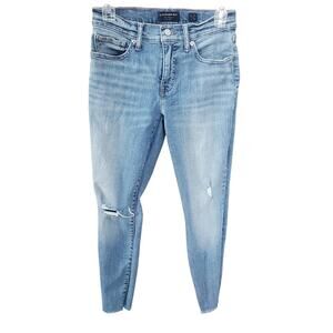 Lucky Brand Size 6 / 28 Light Wash Ava Mid-Rise Super Skinny Jeans Raw Hem Rips