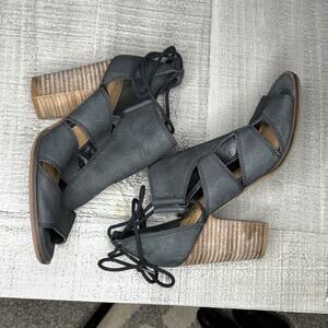 Lucky Brand Size 7.5 Lanita Black Nubuck Leather Lace Up Straps Sandals Heels