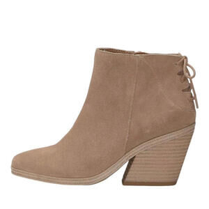 Lucky Brand Size 9.5 Women's Mikasi Zip Up Wedge Booties Tan Leather Suede Laces
